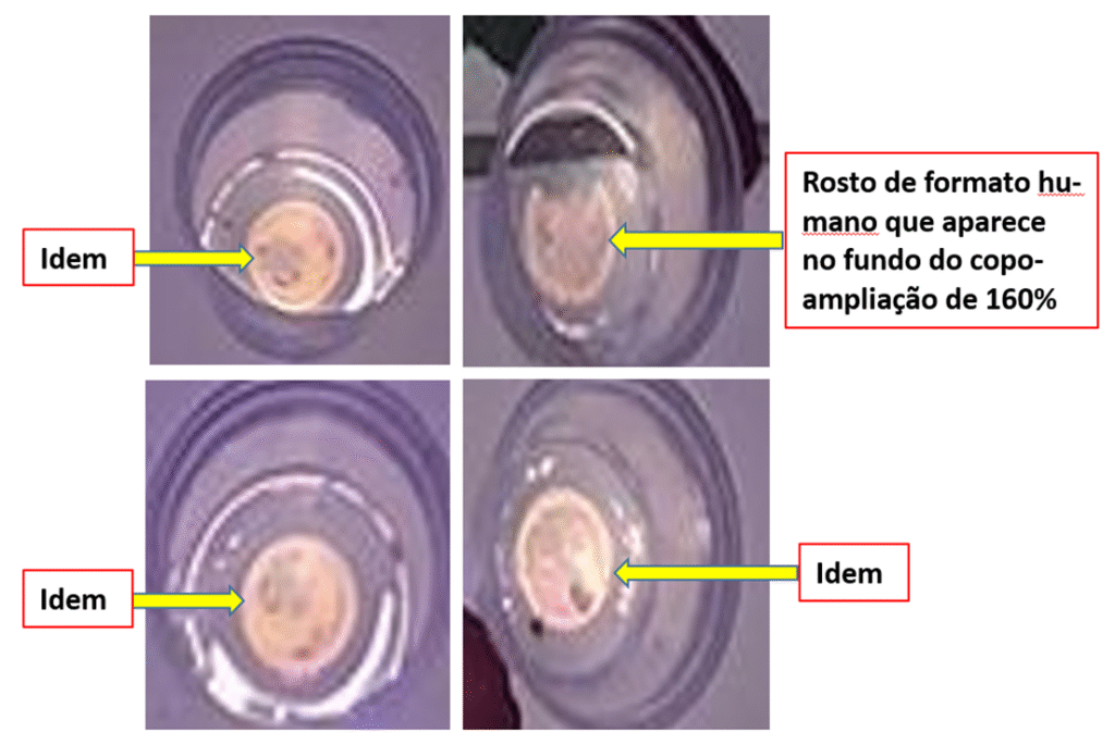 Notam-se rostos de forma humana em cada fundo de copo, não existindo velas acessas nos fundos dos copos.