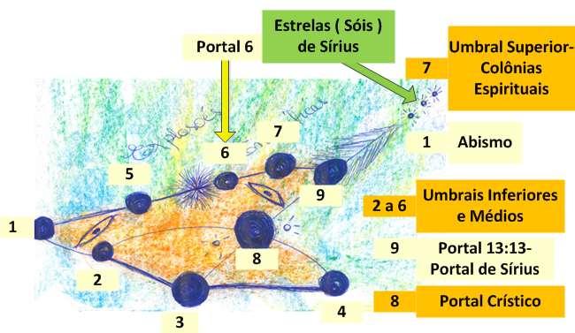 Um Portal abre a entrada para uma Região de Trevas e Sofrimentos de vários tipos para os Espíritos endividados. Um Portal de 3000 AC, significa que os Espíritos estão em Trevas e Sofrimentos desde 3000 anos antes de Jesus, até serem resgatados por exemplo em 2020 DC. Portanto ficaram em sofrimentos e dores por 5020 anos em dos Umbrais inferiores.