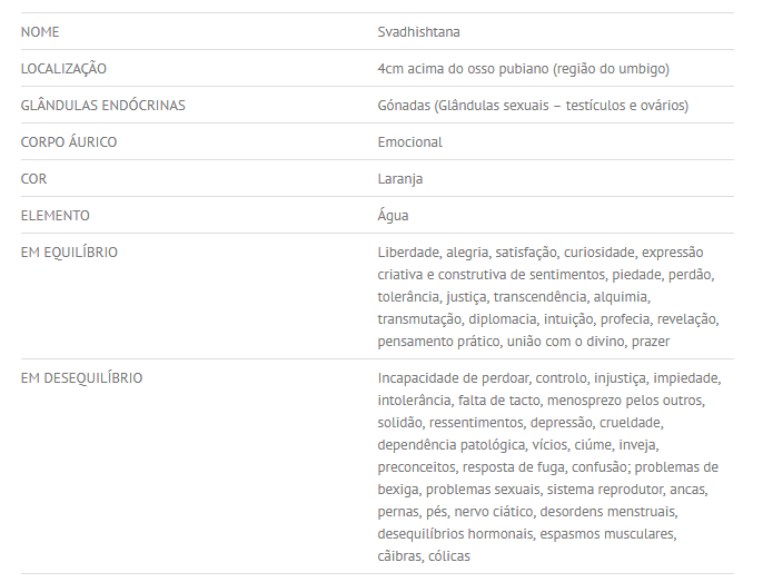 Tab. 2 – Funções do Chacra Esplênico. Fonte: Blog Ser Feliz