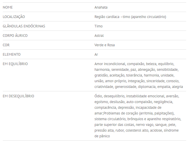 Tab. 1 – Funções do Chacra Coração. Fonte: Blog Ser Feliz