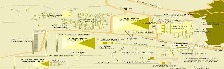 - Uma Grande Pirâmide denominada de a Grande Pirâmide, conhecida também como a Pirâmide de Quéops ou Khufu → a Grande Pirâmide está perfeitamente alinhado com os polos norte, sul, leste e oeste;