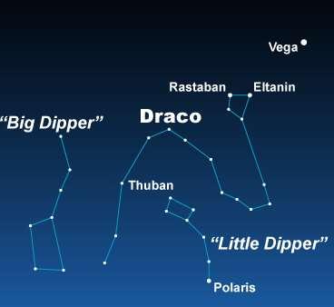 As demais figuras indicam as Constelações de Ursa Menor, Sírius e Draco.