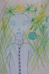 Esboço característico do Irmão Intergaláctico de altura mediana e cor da pele azul.