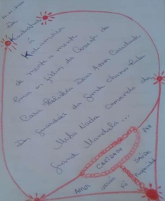 Em 14.01.2022, o Comandante Kadartus, do Comando Intergaláctico da Casa Holística Deus, Amor e Caridade (CHDAC) transmite uma Carta Mensagem, de mente a mente, para a Mentora Kaliamirra, a qual