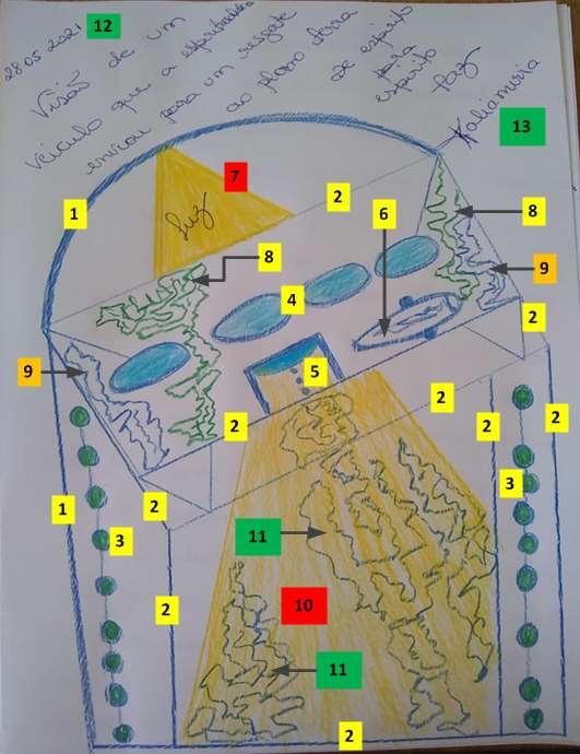 - 6 – Módulo para tratamento do Espírito (na realidade este Módulo fica na parte interna da Nave e é semelhante a um Ovo de Páscoa, com a parte superior móvel. Recebe Energias do tipo da Chama Verde típicas do Comando Santa Esmeralda)