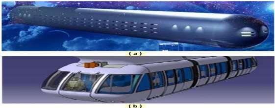 Fig.1 – Desenho artístico de uma Nave do tipo Charuto (a) e de um carro de metrô de superfície (b)